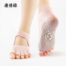 康愫雅瑜伽袜 大师精梳棉防滑硅胶粒透气露趾露背五指袜