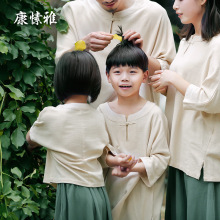 康愫雅春夏棉麻瑜伽服套装男女情侣亲子童装禅修居士茶人服K1629