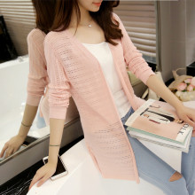 2017春夏中长款修身针织衫女薄开衫外套长袖披肩防晒外搭女空调衫