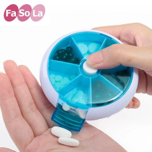 日本七天旋转药盒 简约透明圆形药片盒 一周星期迷你旅行小号药盒