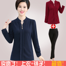 中老年女装秋装长袖T恤衬衫40-50岁大码妈妈装套装上衣裤子两件套