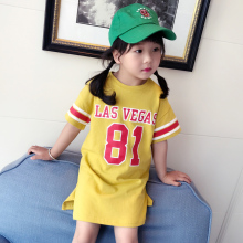 女童夏装2017新款童装儿童中长款运动字母印花短袖t恤女宝宝上衣