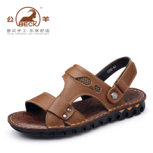 公羊男凉鞋子新款夏季休闲沙滩鞋男士中老年父亲两用真皮露趾凉拖