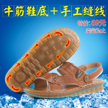 公羊真手工牛皮凉拖鞋子2017夏季新款男士父亲爸爸中老年人式沙滩