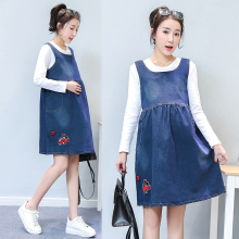 孕妇裙2017春装新款孕妇连衣裙无袖背心吊带牛仔背带裙上衣春秋装