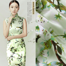 梨花溪月 重磅弹力缎桑蚕丝真丝绸缎数码喷绘印花服装旗袍布料花