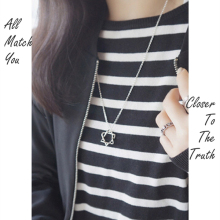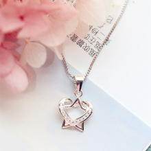 简约925纯银饰品 双子星星爱心镂空双层吊坠项链 短款锁骨链 女