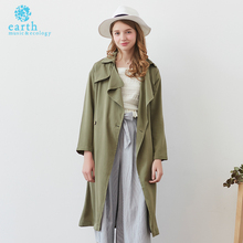 earthmusic 时尚森系复古百搭气质长款风衣外套 10161I31020