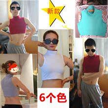 男女针织假领子短款高领无袖小背心半截瑜伽服打底衫白色 湖绿色