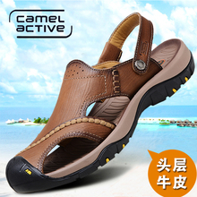 德国骆驼动感夏季包头凉鞋男真皮户外凉拖鞋子厚底防滑男士沙滩鞋