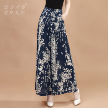 清水灵籽春装新款九分阔腿裤裙裤 加肥休闲印花大码花裤女