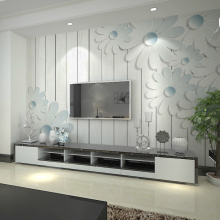 现代简约客厅沙发电视背景墙纸清新花卉木板影视墙壁纸3d壁画淡雅