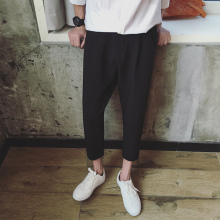 春夏黑色西装裤子哈伦裤英伦休闲裤男士纯色直筒宽松九分裤锥形潮