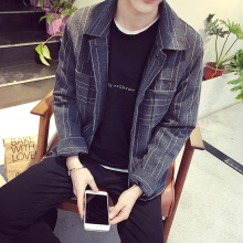 春装男士条纹休闲复古英伦风韩版夹克翻领修身时尚短款男士外套潮