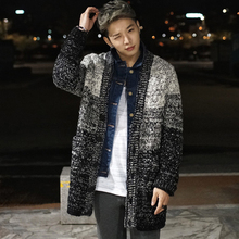 韩国春秋男学生宽松中长款开衫渐变毛线潮男士迷彩毛衣针织衫外套