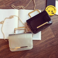2017新款韩版潮时尚漆皮亮面手提单肩斜挎包小方包链条小包女包包