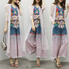 欧洲站2017春夏韩版新款印花九分裤宽松时尚套装休闲气质三件套女