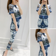 名媛2017新款女装夏装两件套裤韩版短袖搭配九分裤休闲时尚套装女