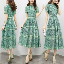 名媛2017夏装新款韩版气质显瘦蕾丝裙收腰中长款短袖修身连衣裙女