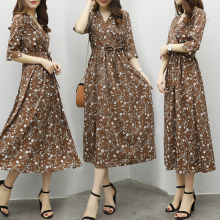 2017夏装新款女装韩版v领修身中长款碎花高腰连衣裙女名媛气质裙