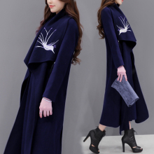 秋冬2017新款女装显瘦毛呢外套女中长款修身刺绣毛呢大衣套装
