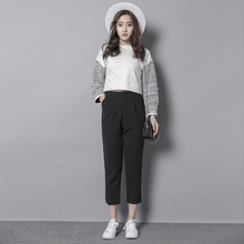 2017春秋新款韩版女裤哈伦裤高腰港味裤子休闲裤九分裤女百搭黑色