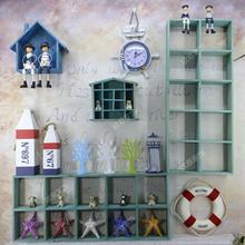 地中海实木做旧蓝色创意搁板格子墙上置物装饰架 壁挂饰家居饰品