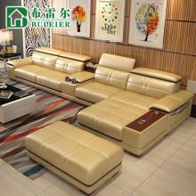 布雷尔真皮沙发现代客厅皮沙发组合USB充电功能整装皮艺沙发