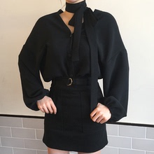 韩国 chic风 随性简约宽松百搭V领长袖衬衫 气质款开衫女 配围脖