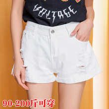 加肥加大阔腿短裤女夏季特大码胖mm200斤打底裤外穿高腰白色热裤
