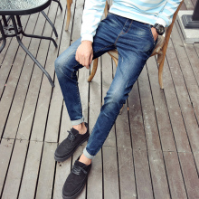 夏季牛仔裤男士修身小脚韩版潮流2017新款青少年学生显瘦百搭裤子