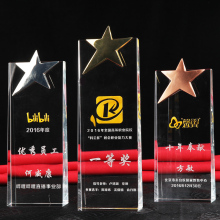 创意举星星水晶奖杯定制刻字五角星奖牌办公司摆件家居授权牌定做