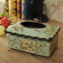美式乡村陶瓷纸巾盒摆件 德琳丝欧式家居创意花鸟抽纸盒礼物摆件