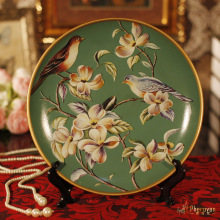 彩绘陶瓷装饰盘坐盘 客厅装饰摆盘欧式家居饰品工艺品 新房摆件