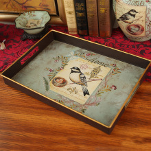 费洛梵 美式乡村水果托盘摆件 德琳丝铁艺花鸟长方茶盘果盘摆设