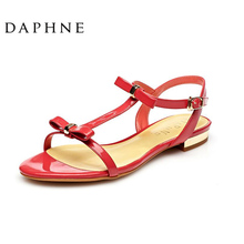 Daphne/达芙妮正品夏季平底女鞋低跟夹趾一字扣绑带凉鞋