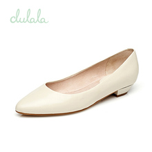 Daphne/达芙妮正品杜拉拉女单鞋粗低跟尖头真羊皮浅口女鞋清仓