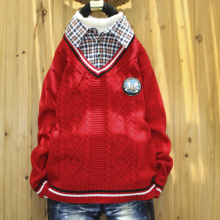 2017新款春装男童毛衣中大童假两件套头针织衫学生衬衫领线衫全棉