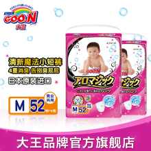 大王清新魔法裤拉拉小短裤M52片*2包 日本进口短裤纸尿裤婴儿尿