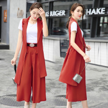 2017夏装新款女装中长款马甲阔腿裤套装女韩版西装时尚两件套潮夏