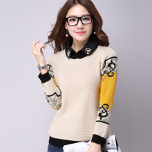 2017秋冬新款韩版时尚百搭娃娃领长袖钉珠针织衫打底毛衣女士厚
