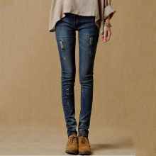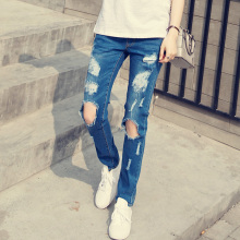 2017春夏新款孕妇裤牛仔裤长裤韩版个性破洞显瘦托腹铅笔小脚裤潮
