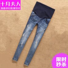 韩国孕妇裤牛仔裤长裤春季新款个性破洞显瘦托腹铅笔小脚裤春装潮