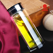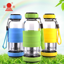 富光玻璃杯便携创意双头单层杯子运动水杯男士女士带盖过滤泡茶杯