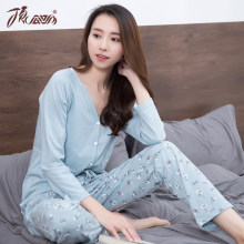 顶瓜瓜睡衣女春 纯棉春秋长袖V领对襟家居服套装 休闲少女居家服