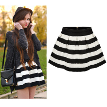 2015秋冬款韩版修身显瘦黑白条纹高腰百搭裙高腰蓬蓬裙短裙半身裙