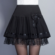 2015秋冬款新品蓬蓬大摆伞裙短裙百搭经典黑色蝴蝶结系带半身裙女