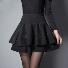 秋冬短裙毛呢半身裙新款裙裤A字裙高腰伞裙百褶裙蓬蓬裙打底裙子