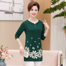 中老年人女春秋装大码妈妈装套头中长款打底衫40-50岁长袖T恤上衣