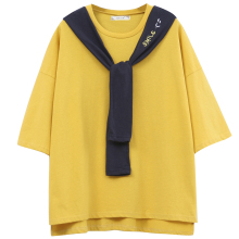 2017夏装新款韩版披肩上衣纯色字母刺绣学生宽松圆领短袖T恤女